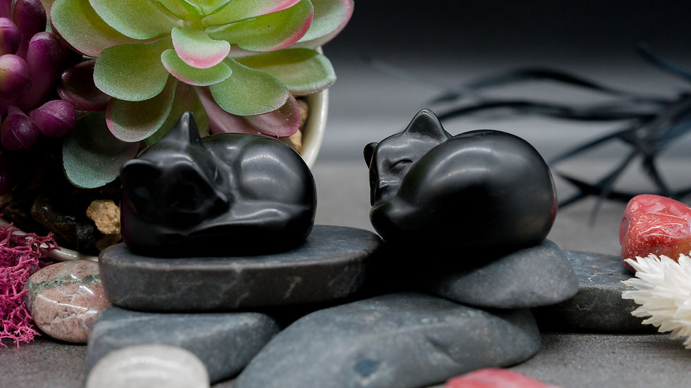 Obsidian Crystal Sleeping Cat Carving Stone Healing Protection Pet Trinket Decor