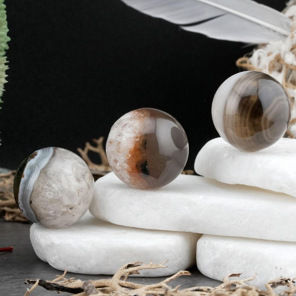 Agate Quartz Mini Sphere Crystal Decor Gift Spiritual Protection Energy Stone