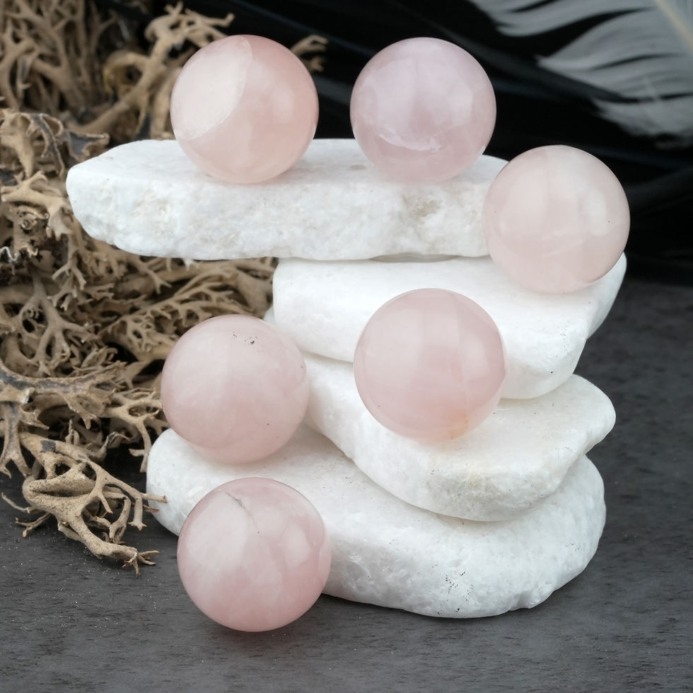 Pink Rose Quartz Mini Sphere Crystal Ball Decor Spiritual Energy Stone Altar Art