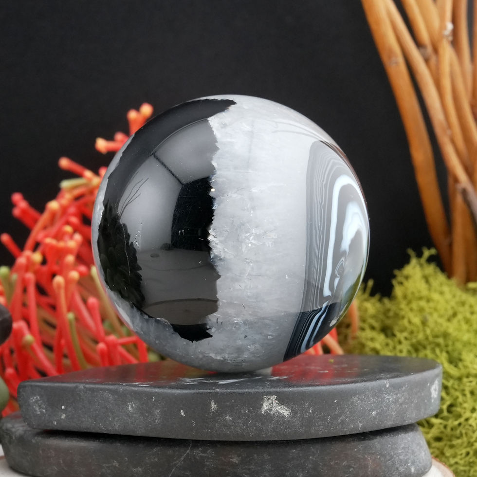 Black Agate Quartz Crystal Sphere Druzy Ball Boho Crystal Shelf Home Decor Gift