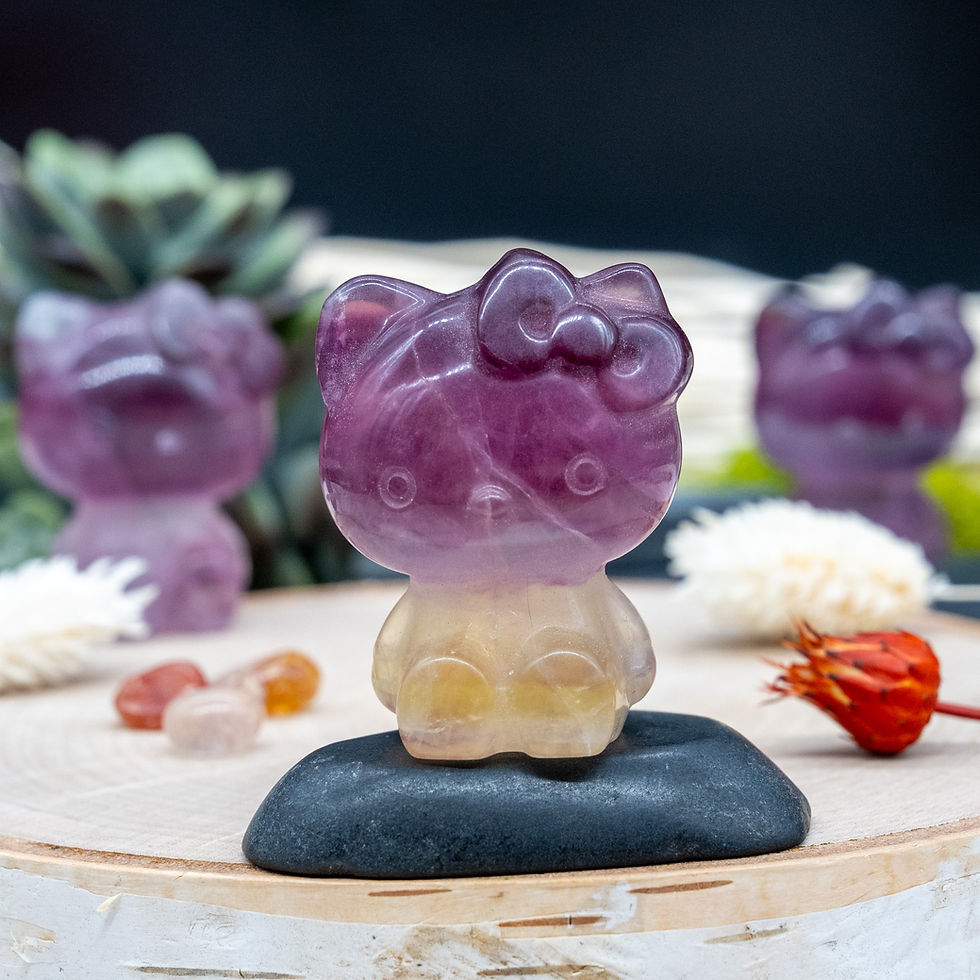 Fluorite Hello Kitty Crystal Figurine Anime GIrls Kawaii Decor Cat Lover Gift